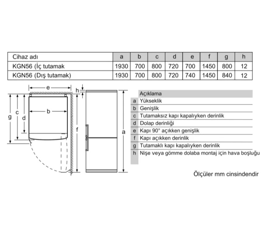 | Kapı Yönü | Sağ, değiştirilebilir |
