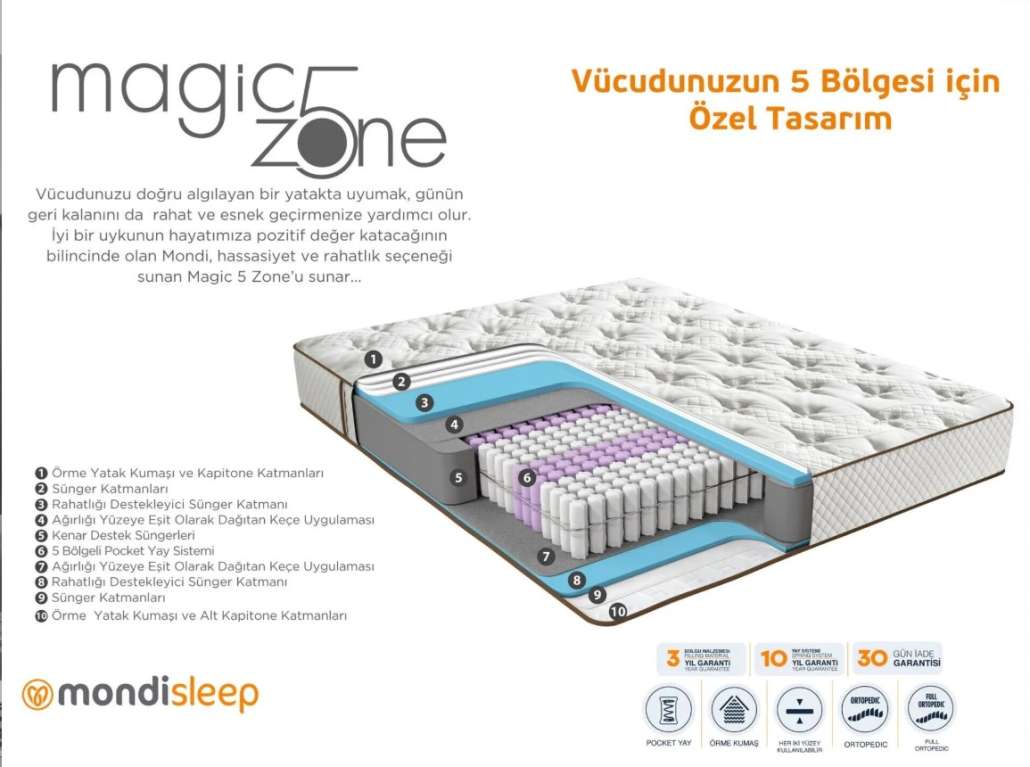 MAGİC 5 ZONE 90X190 CM MONDİHOME YATAK