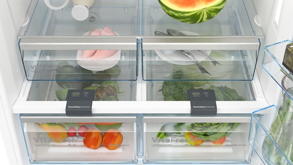 | 2 adet nem kontrollü ve raylı VitaFresh çekmecesi – Meyve ve sebzelerin tazeliği ve vitaminleri daha uzun süre korunur. |