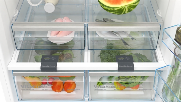 | 2 adet nem kontrollü VitaFresh plus çekmecesi – Meyve ve sebzelerin tazeliği ve vitaminleri 2 kata kadar daha uzun süre korunur. |